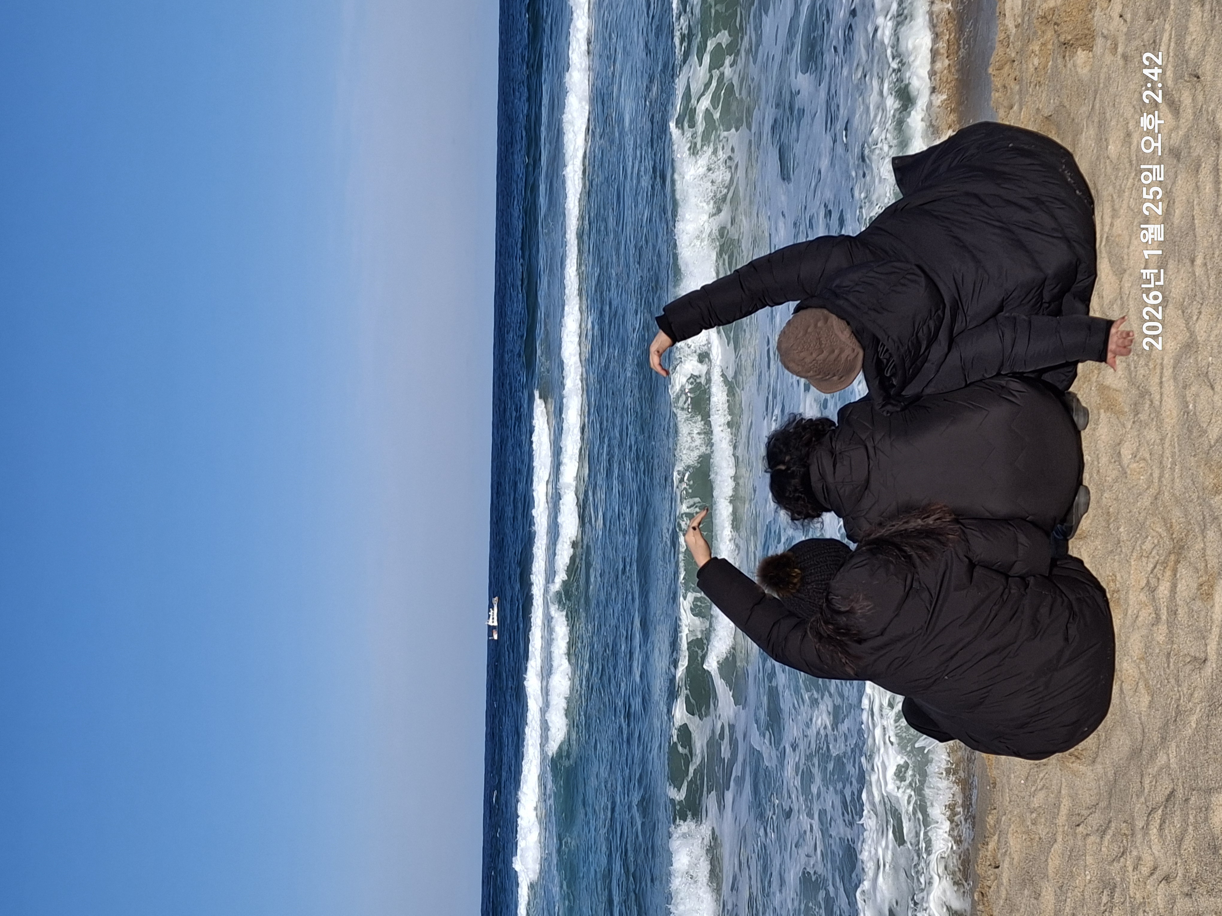도착해 겨울바다를 멍하니 바라보니 너무 좋더라구요 파도도 얼마나 높게 치던지 여름이었으면 바다로 뛰어들고 싶을 정도 였네요